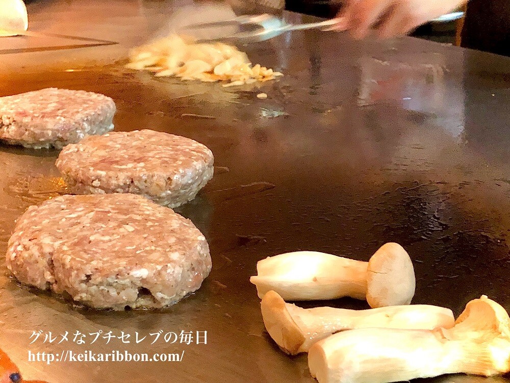 目の前の、ものすごく大きな鉄板で、ジュージュー焼いてくれる「鉄板焼ハンバーグ」のランチは、な・な・なんと950円!