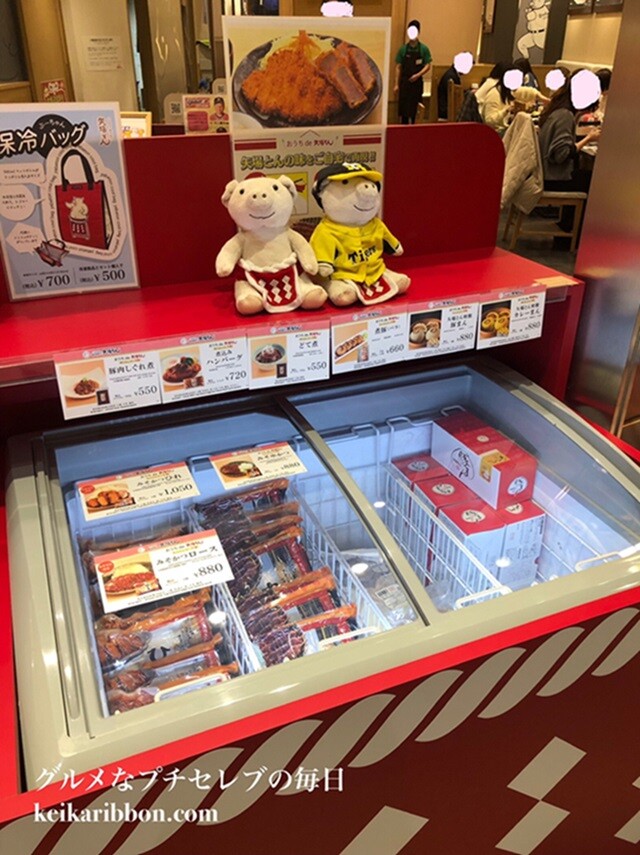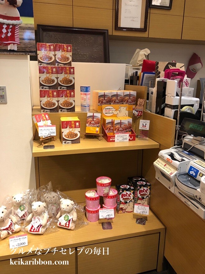 ぶーちゃんの可愛いマグカップやTシャツ、カレー・煮込みハンバーグ、そして「みそかつ」や「みそ串かつ」などが売っているので、家でも矢場とんを楽しめます。