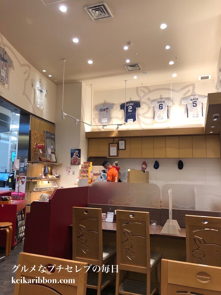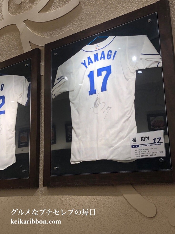 店内は、中日ドラゴンズ選手のユニフォームが飾られ、ドラゴンズ色に染まっています。