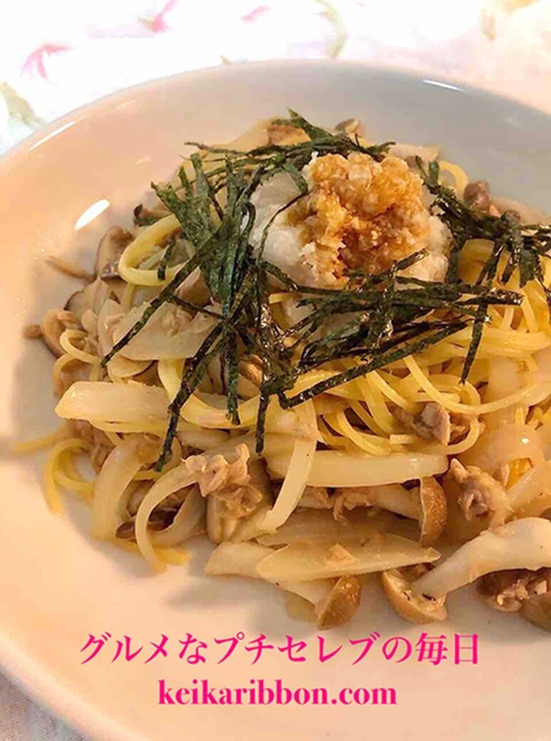 このパスタ、大根おろしをたっぷりとトッピングすることで、さっぱりしているのに味わい深い、そんな一皿に仕上がります。