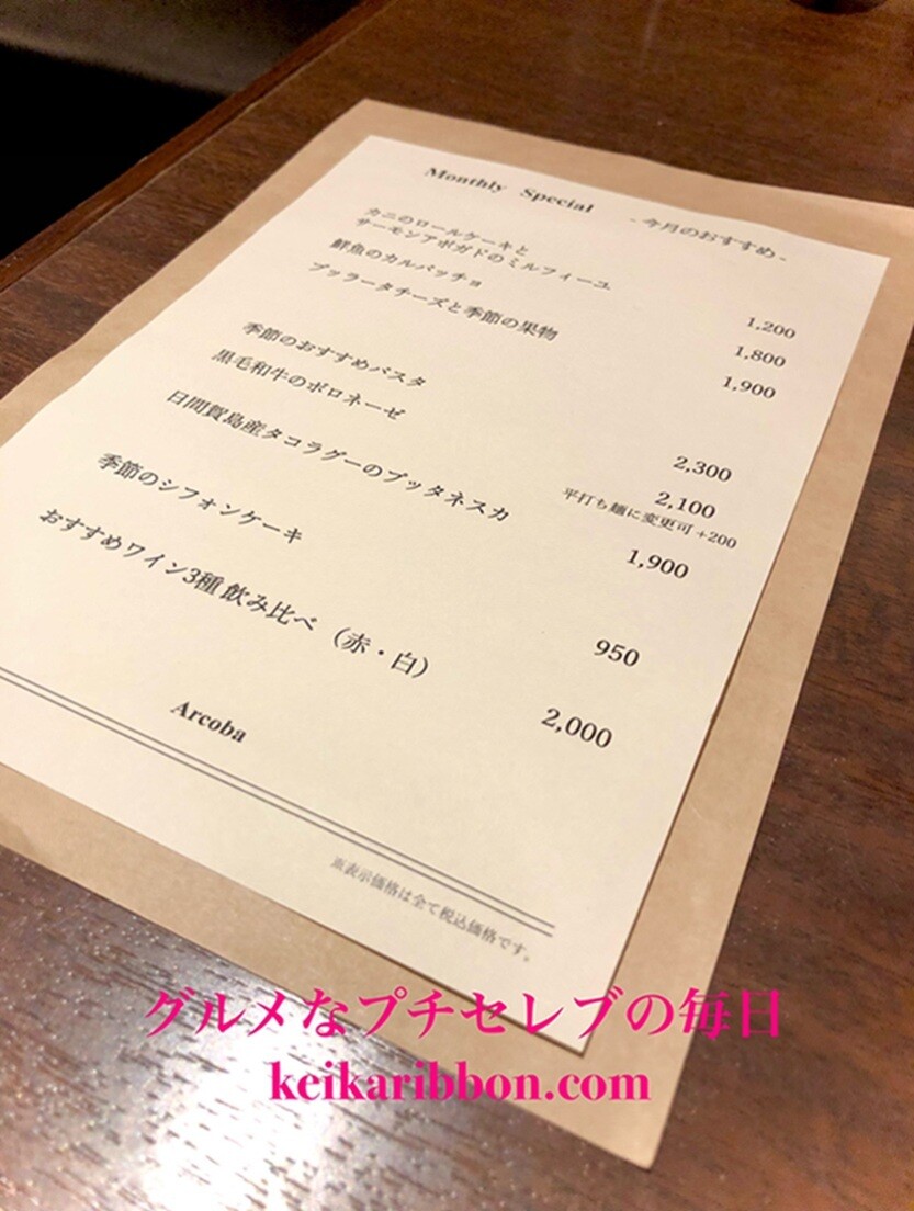 「今月のおすすめメニュー」は絶対に外せないので、この中から2品注文しました。