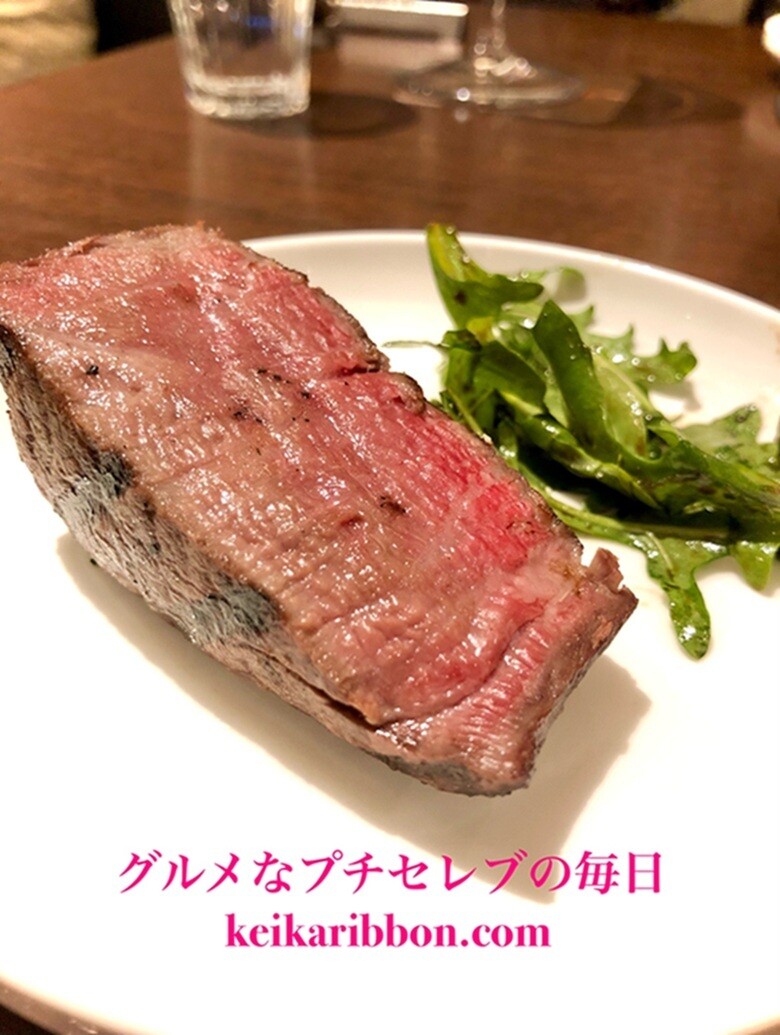 完璧な焼き具合で見た目も美しいステーキを、友達と一切れずつお皿に分けて、ゆっくりといただきました。